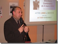 Christian Praud présente une vidéo de 12 minutes sur le développement durable. Il explicite ensuite à l’ aide d’ un diaporama les lignes directrices inscrites sur son journal de campagne.